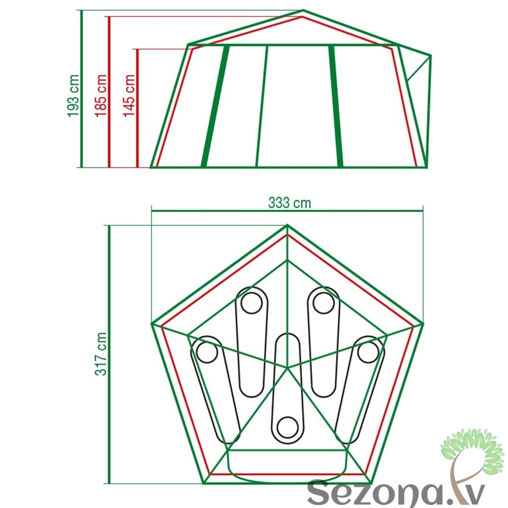 - Izmēri (G x P x A): 317 x 333 x 185 cm