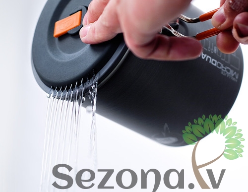 Mazs, bet pārdomāts trauku komplekts divām personām. Anodizēts alumīnija katliņš ar karstumizturīgu neilona vāku, kurā ir iestrādāti nokāšanas caurumi. Ērts nolokām rokturis. Katliņā var ietilpt ne tikai komplektā esošās bļodiņas un dakškarotes, bet arī gāzes deglīties ar 110 gramu gāzes balonu. Turklāt mazgāt bļodiņas var arī uzglabāšanas somiņā, jo, pateicoties tās pārlīmētajām šuvēm, to var izmantot kā izlietni. Lielisks komplekts 1-2 personām nelielos pārgājienos ar minimālu ekipējuma daudzumu.