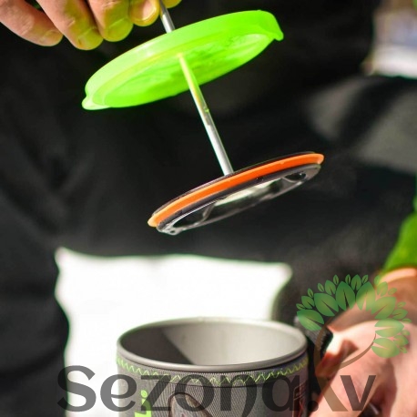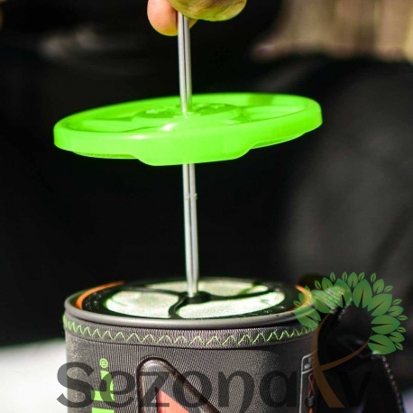 Jauna dizaina Jetboil kafijas prese ar silikona gredzenu, ar kuras palīdzību var pagatavot gardu kafiju vai arī tvaicēt dārzeņus un zivis. Savietojams ar Jetboil Stash, MiniMo, SUMO