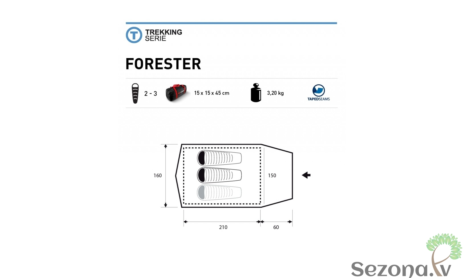 - Iekšējās telts materiāls: permeable WR 100 % PES