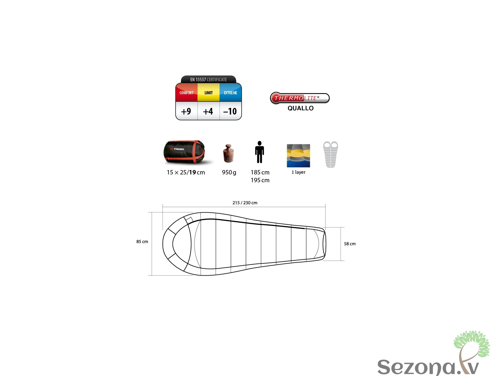 - Izmērs: 85/58 x 215/230cm