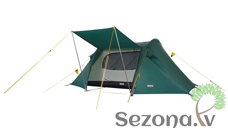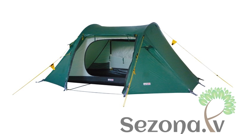 The new tent model Pioneer is a 2 person longitudinal sleeper tunnel tent with two side entrances. The open doors can be assembled with additional poles as canopy. The Pioneer is absolutely suitable for winter, has sufficient mesh pockets in the inner tent. The two equally large inner tent doors are fitted in the upper half with coverable mosquito mesh.