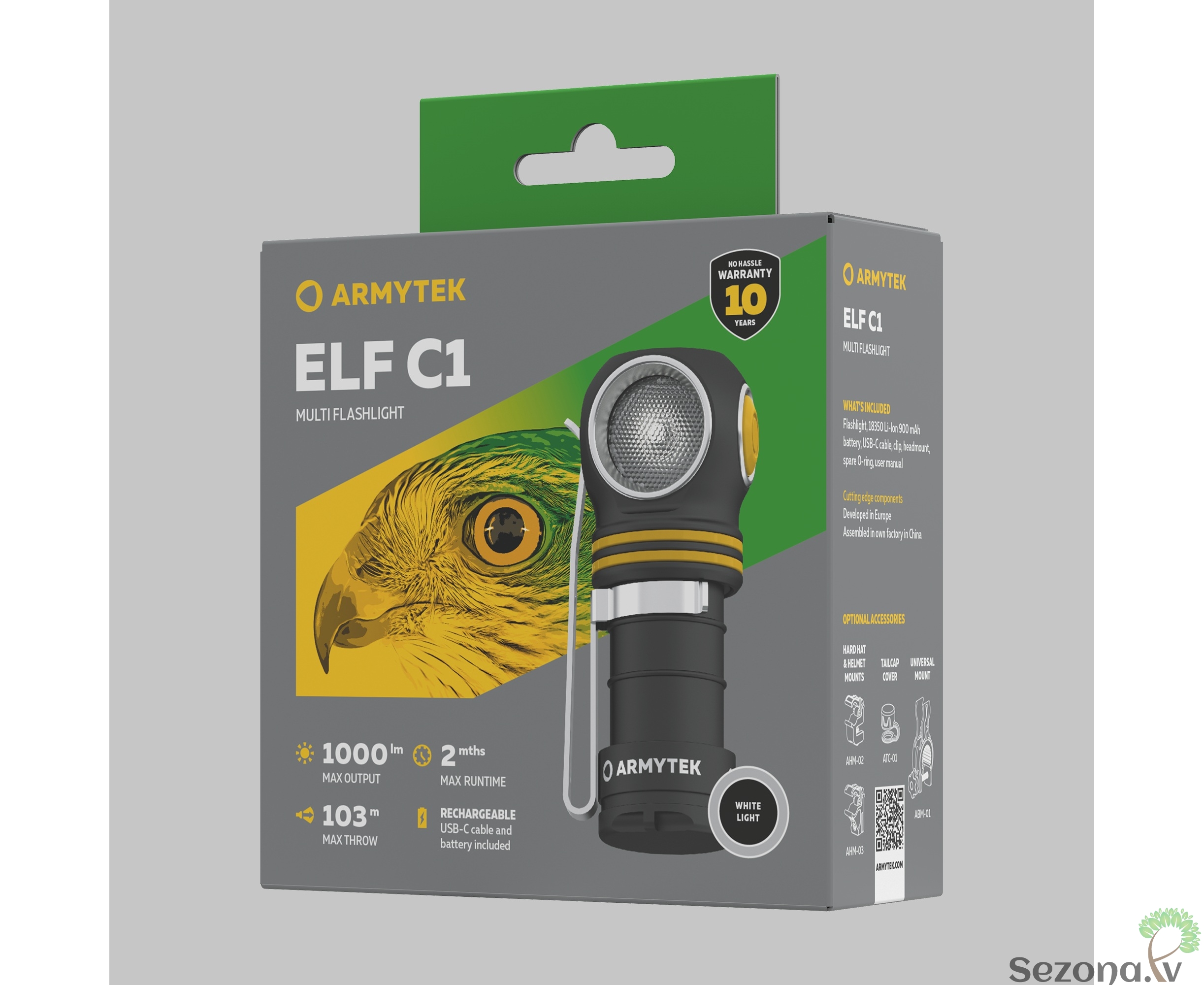 ARMYTEK ELF C1 USB-C (WHITE LIGHT) pieres lukturis.