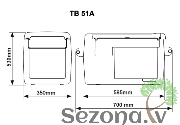 - Ārējie izmēri, mm: augstums-445 ; platums -350 ; dziļums-585(700mm ar rokturiem)