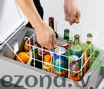 Izņemams produktu grozs. Maksimālā ietilpība: 2 litru pudeles vertikālā stāvoklī.