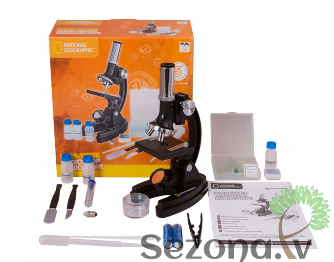 National Geographic sērijas monokulārs bērnu mikroskops ar maināmu palielinājumu no 300-1200 reizēm. Ar komplektā esošajiem objketīviem palielinājumu iespējams mainīt 300x / 600x /1200x režīmos. Ir arī 7,5x / 15x / 30x objektīvi. Mikroskops darbojas uz 2 AA baterijām un komplektā ietilpst plašs piederumu komplekts.