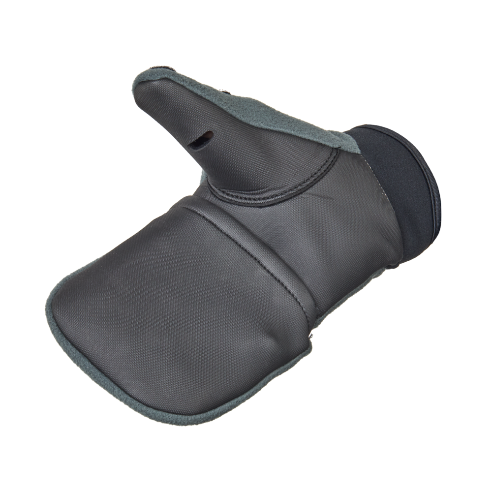 Vēja necaurlaidīgi cimdi-dūraiņi no poliestera ar PU membrānu un neoprēnu ar atlokāmu pirkstu daļu.