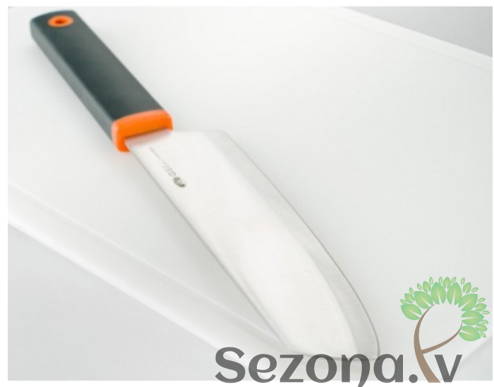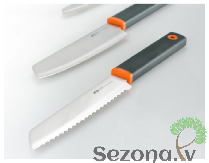 Visiem nažiem ir nerūsējošā tērauda asmeņi un asmeņu aizsargi drošai transportēšanai, kā arī gumijas rokturi labam satvērienam. Divpusējs dēlītis griešanai, kas marķēts ar gaļas vai dārzeņu ikonu. Ātri žūstoša mikrošķiedras drāniņa, ar mīkstu un raupjāku pusi.