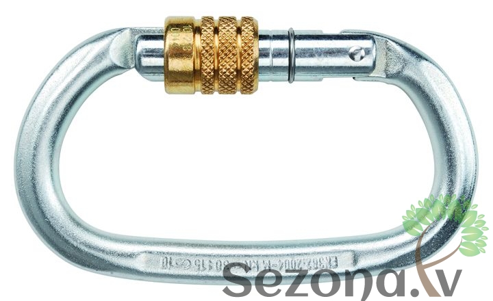Viegli kontrolējama ovālas formas tērauda karabīne ar skrūvējamu aizdares mehānismu. Tā piemērota dažādiem lietošanas veidiem, piemēram, pastāvīgu enkuru uzstādīšanai. Izmērs: 108 x 60 mm.