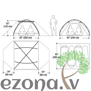 Telts izmēri: 132 x 208 x 236cm