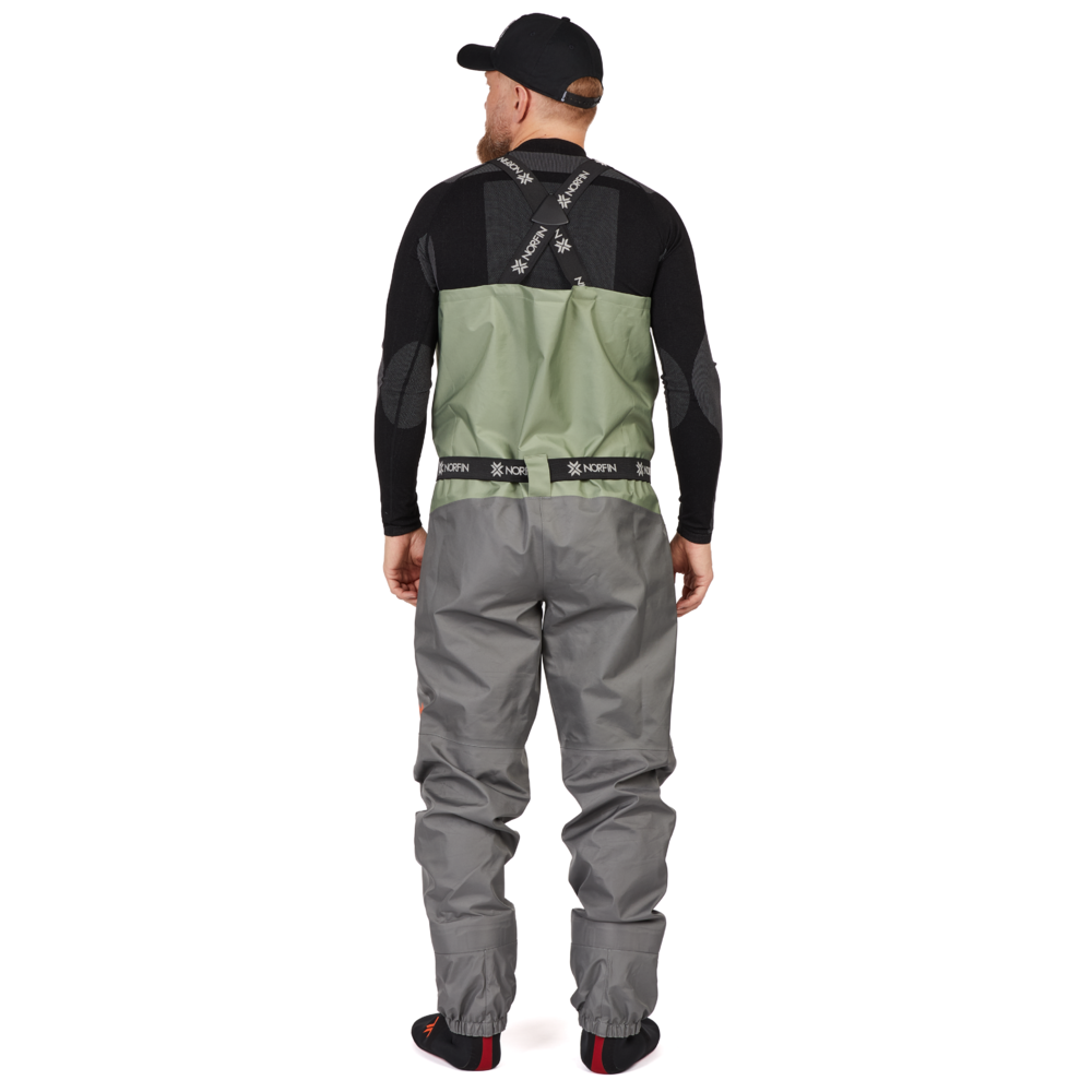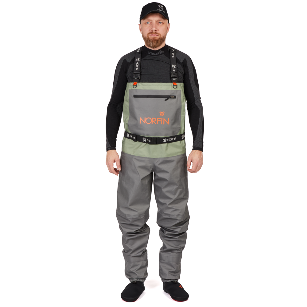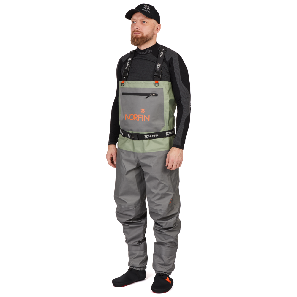 Zābakbikses izgatavotas no augstas kvalitātes 4-slāņu materiāla, kas nodrošina ideālu līdzsvaru starp izturību un gaisa caurlaidību. Liela ārējā kabata, kur glabāt makšķerēšanas piederumus, un iekškabata ar rāvējslēdzēju. Komplektā ietilpst ūdensizturīgs maciņš telefonam. Ergonomiskas zeķes, kas izgatavotas no nodilumizturīgā neoprēna, biezums 5mm.