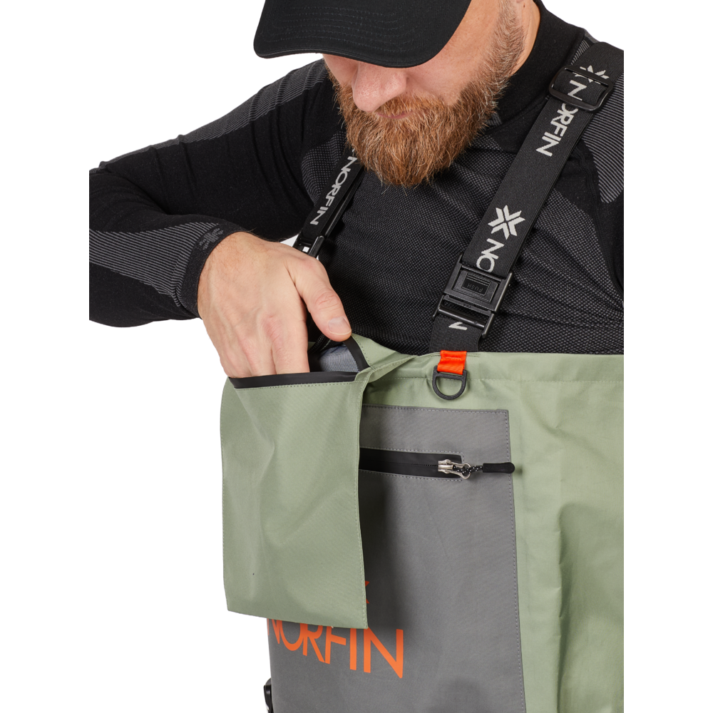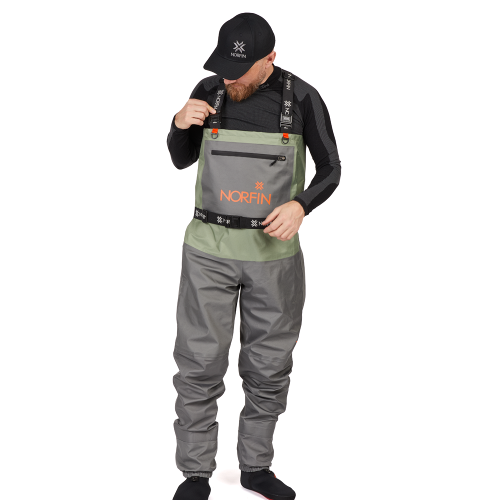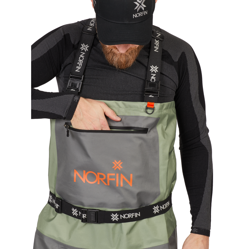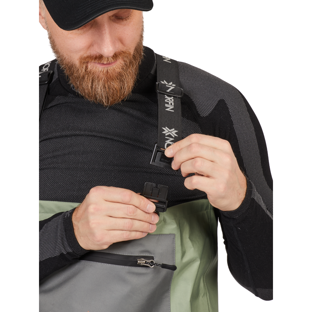 Zābakbikses izgatavotas no augstas kvalitātes 4-slāņu materiāla, kas nodrošina ideālu līdzsvaru starp izturību un gaisa caurlaidību. Liela ārējā kabata, kur glabāt makšķerēšanas piederumus, un iekškabata ar rāvējslēdzēju. Komplektā ietilpst ūdensizturīgs maciņš telefonam. Ergonomiskas zeķes, kas izgatavotas no nodilumizturīgā neoprēna, biezums 5mm.