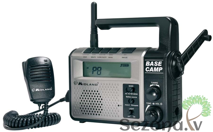 Komplektācija: Midland Base Camp446, sienas adapters, 800mA /h akkumulators, pleca siksna un 2 kontaktu mikrofons.