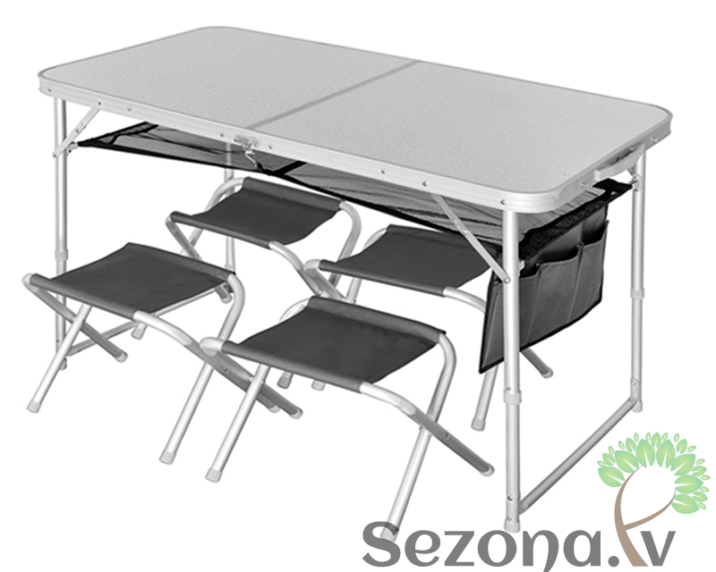 Ļoti ērts piknika komplekts, ar galdu un četriem krēsliem. Šos krēslus ir iespējams savietot aizveramā galda virsmā, kas ir ļoti parocīgi šī komplekta pārvietošanai.