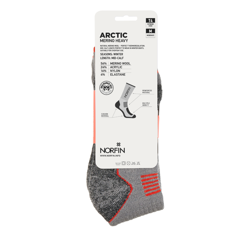 Norfin ARCTIC MERINO HEAVY T4M zeķes nodrošina izcilu aizsardzību ekstremālos aukstuma apstākļos.