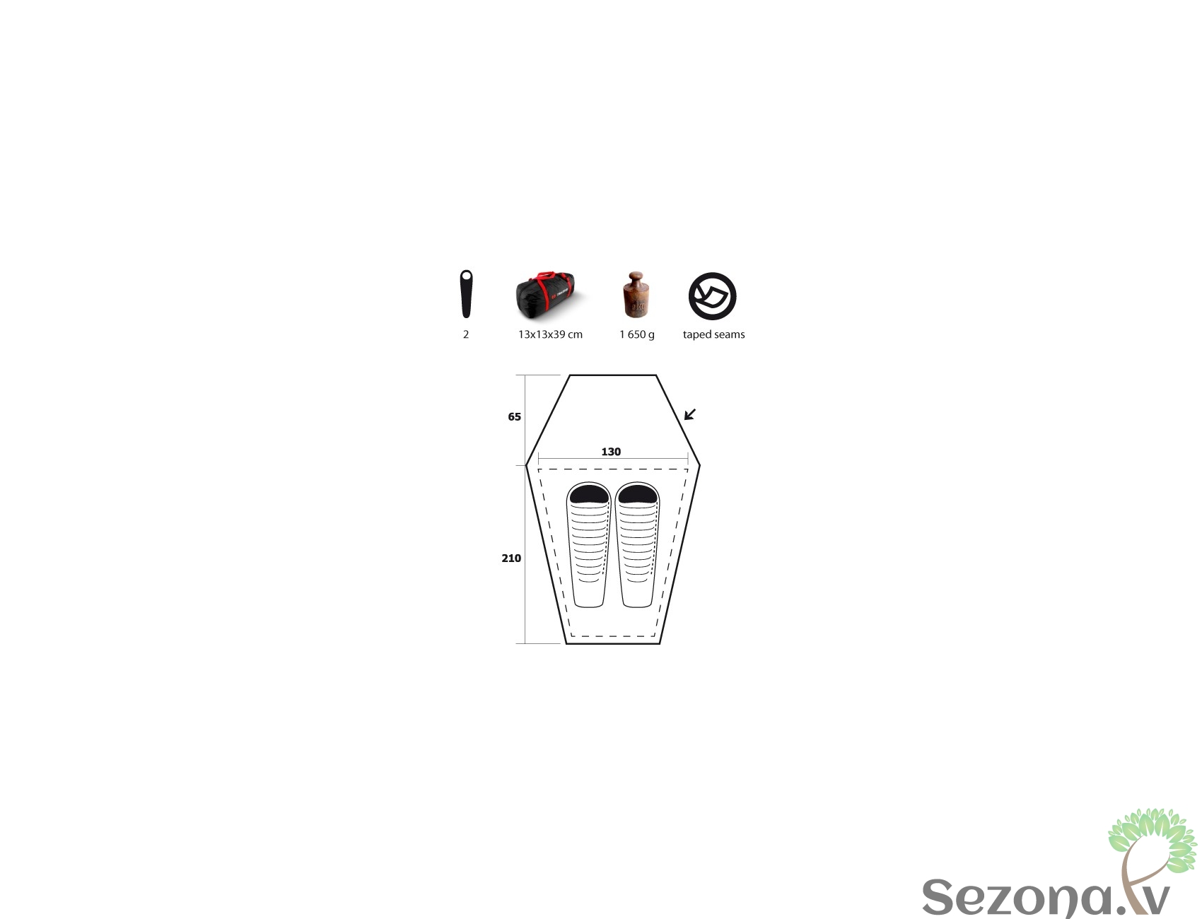 - Virspuses telts materiāls: 100% ultra – light nylon ripstop, 4000 mm H2O, silikonized