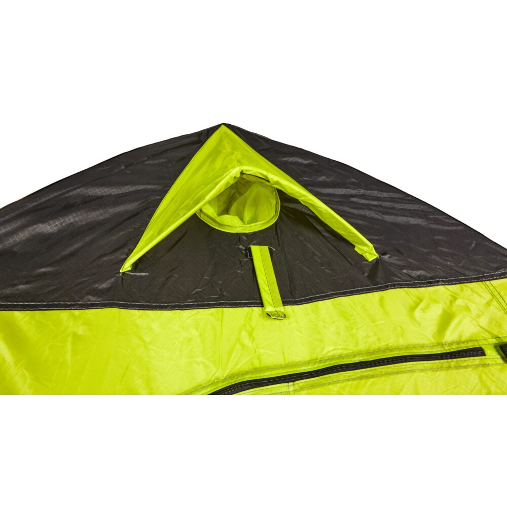 - Telts spilgti zaļā krāsa un atstarojošie elementi – padarīs telti gaišu un pamanāmu tumsā.